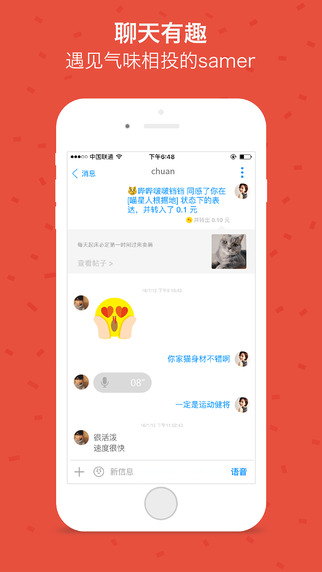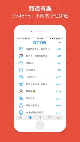 same app是一款非常有趣的社区社交软件,这款软件的核心在文字、音乐、影评、图片四个频道。你可以在一个频道下创建相应的题目供自己其他的用户填充内容,也可以在已有的频道下发表自己的内容。