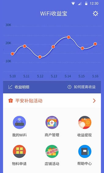 wifi收益宝app是由平安WiFi推出的全新WiFi经营收益管理平台。WiFi所有者通过WiFi收益宝,把自有WiFi热点接入到平安WiFi的网络之中,就可以根据用户在该热点产生的累计上网时长等因素,获得由平安WiFi提供的收益。