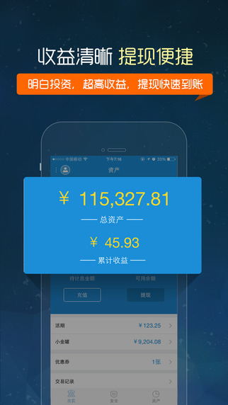 ·超高收益:活期理财年化收益8%,是余额宝的3倍,黄金理财年化收益最高可达30%;