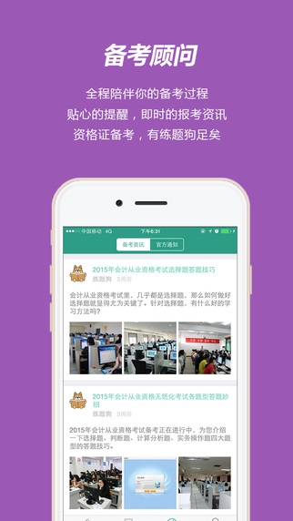 会计从业练题狗ios版是一款基于苹果ios系统,专为会计从业资格证考试复习备考而开发的一款手机app,app主要通过在手机上进行会计从业资格证考试相关科目的练习以及模拟测试来提高考试的考试成绩,和考证过关率。是准备参加会计从业资格考试的朋友们的复习必备app。