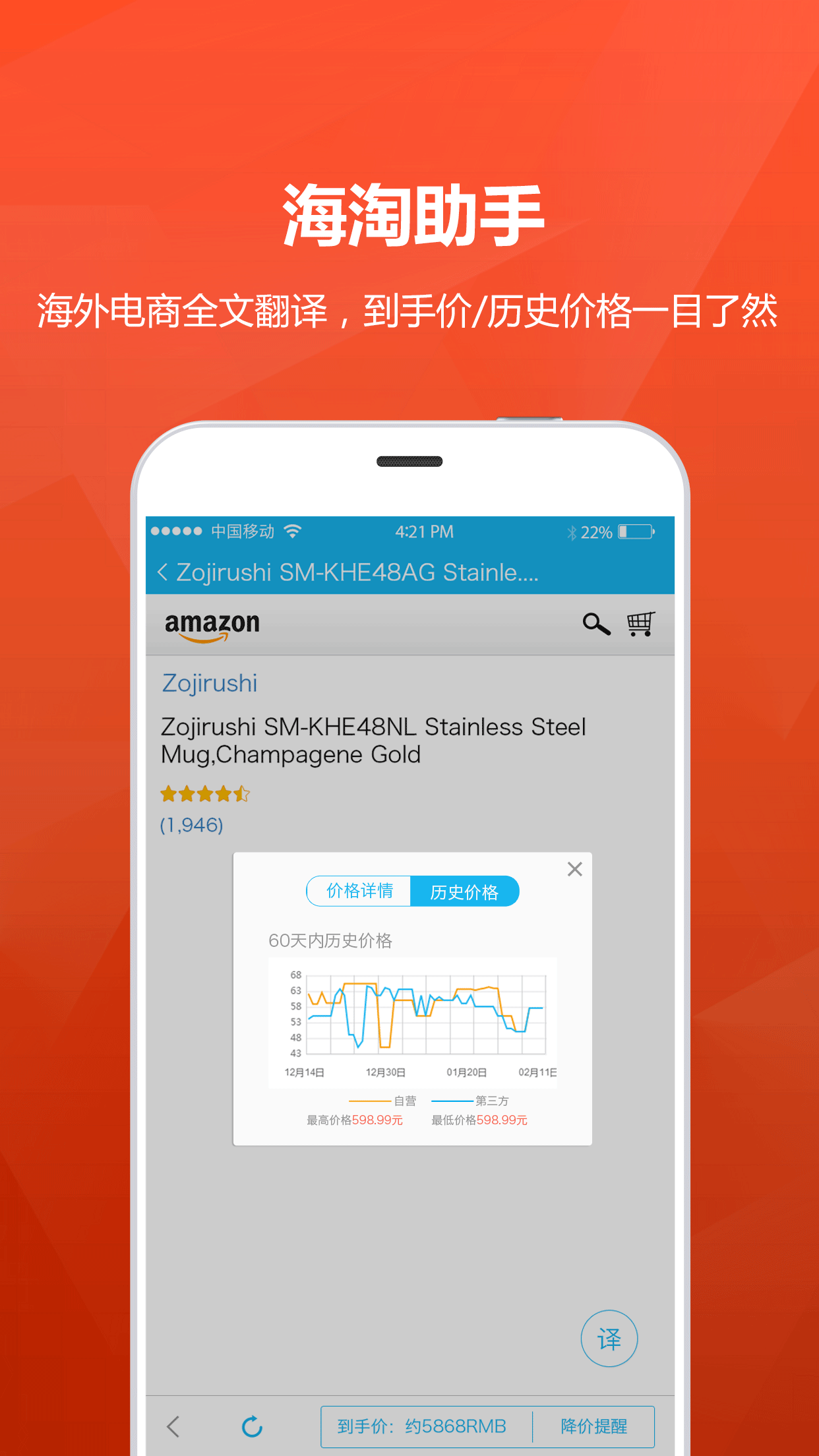 支持多达127家转运公司,新增海淘历史最低价功能,全天24小时不间断更新美国亚马逊历史最低价商品,全网独家,拒绝买贵!