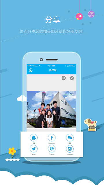 它不仅能够让用户在游玩的过程中时时通过本软件查看由迪彩专业摄影师拍摄的所有精美图片,还能随时随地的查询热门景点位置,成为客户游玩的向导工具;同时用户也可以选择在线购买照片并且定制各种个性化影像类礼物,而且可以一键及时分享到用户的社交平台,第一时间分享用户的精彩瞬间;也永久保存了您最美好的记忆,最重要的是免去了用户花费大量时间去排队等待,从而可以更自在的享受到轻松愉悦的游园体验。