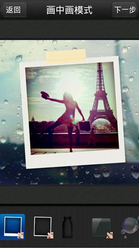 画中画相机独创【画中画】特效:随手拍,马上变艺术照!拍照软件不稀奇,图片处理应用更不少,要说现在的商店里什么软件最多,那非此类应用莫属,如果开发商还想在此基础上赢得一席立足之地,光有好产品还不行,你得够“另类”,够创新,及别人所未及,想别人所未想,只有这样的产品才可能博得用户喜爱。