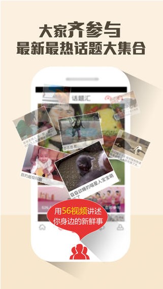 3、【热门话题】最新最热最贴近生活的话题汇,一键参与用视频表达观点,分享快乐与感动,用56视频讲述你身边的新鲜事;