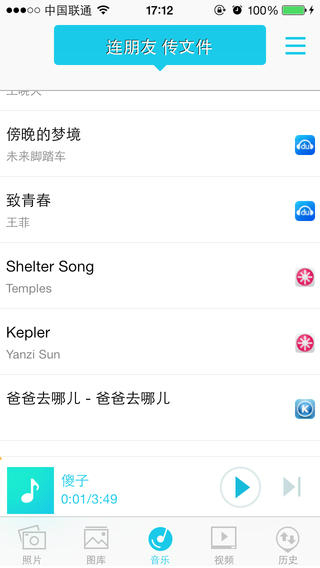 2,支持播放包括ape, flac等各种格式的歌曲