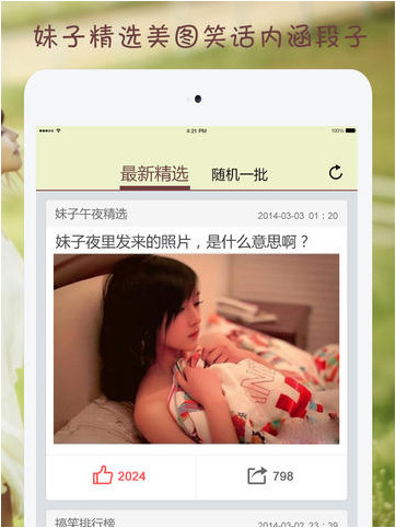 搞笑妹子ios版是一款娱乐信息软件,这款工具每日汇聚精选的笑话段子丰富你的生活,幽默的文字与内涵的图片,请睁大眼睛的同时多加回味……太过纯洁的朋友请谨慎下载。