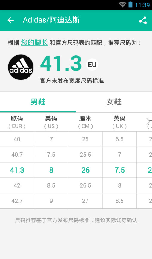 【鞋码助手不仅能推荐最合适的长度码,还会贴心的推荐宽度码给您】