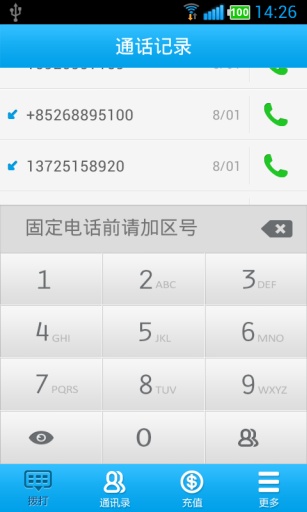 微信通是国内最受用户欢迎的网络电话知名品牌。①通话好:独有的优质线路资源,保证通话清晰稳定;②真免费:注册即可免费打,不充值1~8点免费打;③送话费:注册、邀请、意见反馈都可获得话费赠送;④真省钱:打全国低至1分,省话费可达85%;微信通网络电话是您的最佳选择!