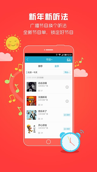 4、节目单:让您轻松找到爱听的节目单,同时可根据广播节目类型、所属地区及播音语言检索今天的直播/回听节目单,以及7日内回听节目单,查询结果可分时段查看,清晰掌握电台节目播出时间;