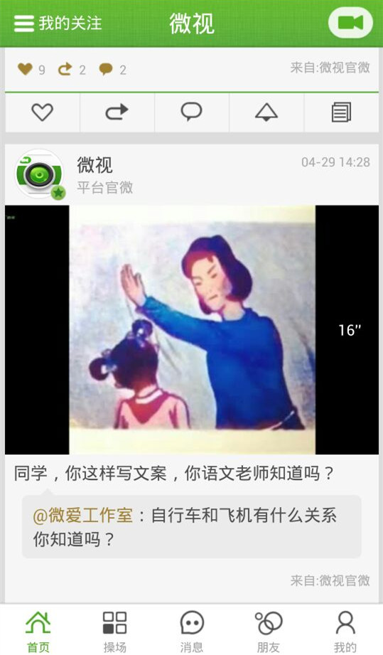 社区分享 微信、QQ、微博一键登录,轻松找好友; 视频一键分享到新浪微博、腾讯微博、微信好友和朋友圈。