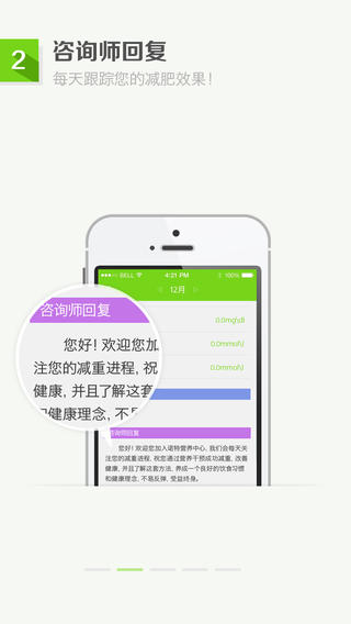2、 用户可以与专业营养师进行减肥问题一对一咨询;