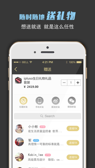 礼喔是一个随时随地接受和赠送礼物的社交工具,随时随地都可以在App中挑选礼物,并且及时送到TA手中,让TA收获满满惊喜!