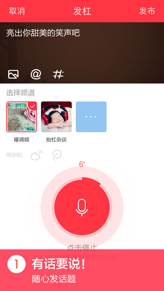 抬杠是一款手机语音互动社区,随时随地的参与你感兴趣的话题杠一杠吧,还可以和明星直接语音对话!