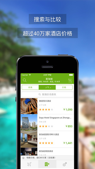 在一个应用内直接搜索机票和酒店