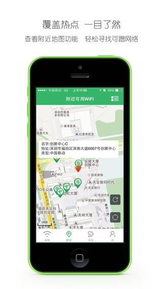 2:查看附近地图,发现周围可蹭热点具体位置。