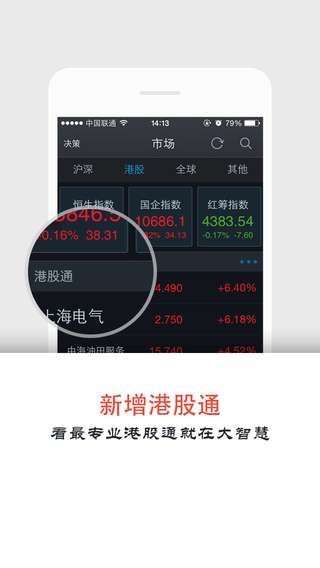大智慧手机V7.60版为方便沪港通用户,已新增港股通行情。