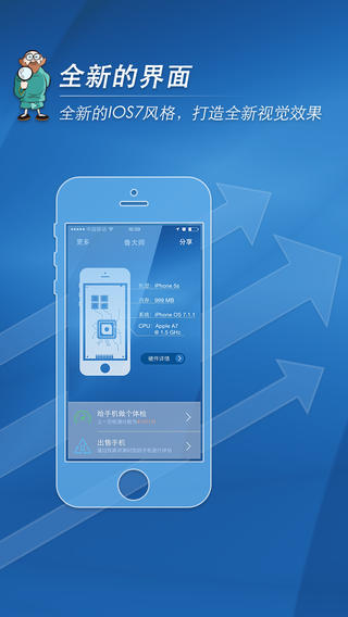 鲁大师iOS版是一款免费给iPhone手机进行性能评测、跑分、估值和二手回收的软件,针对ios7进行优化;支持工行农行建行招行支付宝等收款方式,微信新浪微博分享可获补贴。