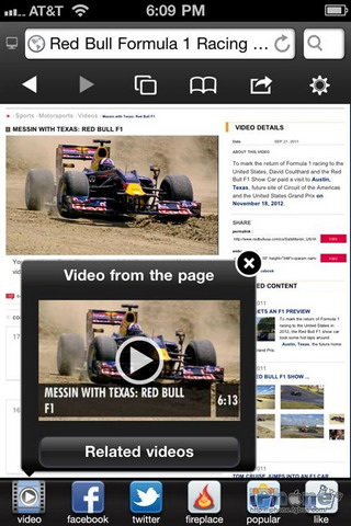 支持Flash Skyfire推iPhone版本,主要的向前、向后、刷新、主页等功能都排列在浏览器的顶部,外观简洁,Skyfire浏览网页实际上并不是打开目标网站的网页,而是打开skyfire服务器渲染过的适合移动浏览的版本。Skyfire For iPhone支持flash视频浏览。
