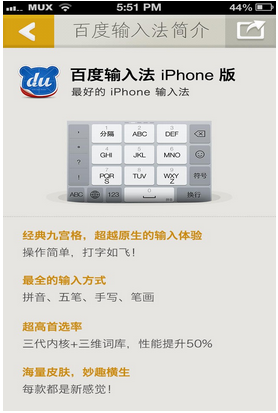 您所在的位置:首页 > 手机软件 > 苹果软件 > 其他软件 > 百度输入法 V4.3 iPhone版