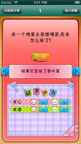 脑筋急转弯怎么玩?什么,还在自己偷着乐!你out了,现在都pk拉!脑筋急转10000弯的二代产品,隆重推出pk加强版。情侣/夫妻/家人 一起比赛吧。