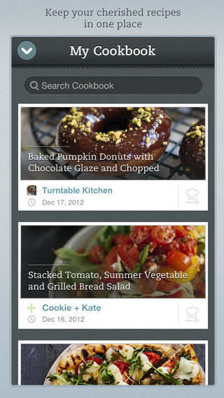 •我的食谱 - 食谱保存在应用程序,再加上那些你已经夹在Evernote的,在这里显示使他们很容易找到从任何设备。