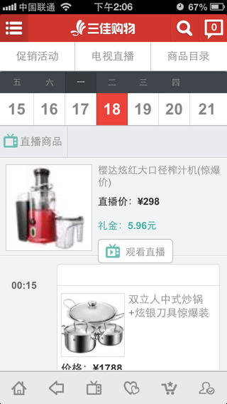 节目预告:可查看三佳购物的电视播放编排表,以前播放商品也可以查询.