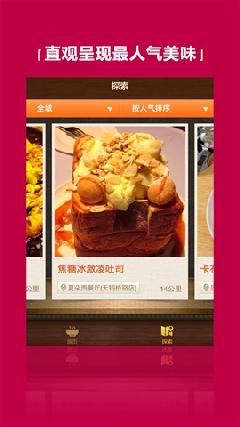 2、随机探索最IN美味 按商圈、人气、距离等多维度探索,发现每天不同的招牌菜。