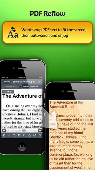 一款强大的阅读软件,支持 Office 文档、PDF、TXT、HTML 等文件浏览,支持书签,支持横屏,还可以通过 WIFI 与 PC 或 MAC 共享文件。