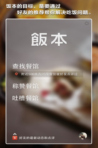 饭本现在很多朋友在网上看到一些餐馆的评论,就去试试,但是发现很多都不尽人意。还是朋友推荐的比较靠谱,这款饭本就是为这样的你专门设计的。让朋友给你推荐好吃的地方,你也可以向朋友推荐你觉得不错的地方。