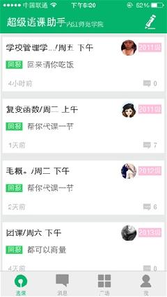 超级逃课助手,是一款手机安卓系统应用软件,供高校学生逃课使用。有需要逃课求助的学生只需发布逃课信息,并附加部分补偿条件,就可以找到代替自己上课的人。