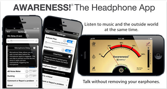 Awareness! The Headphone App一款耳机应用,能够感应周围环境的噪音强度,并且能根据你的设定发出刺耳的预警。让您在听音乐的同时也能提高您的安全意识。比如说你边开车边用你的 iPhone听音乐,这是迎面来了一辆车,发出刺耳的喇叭声,而你因为戴着耳机没有听见,这时候你的iPhone就会有反应并发出预警。怎么样?够神奇 吧。
