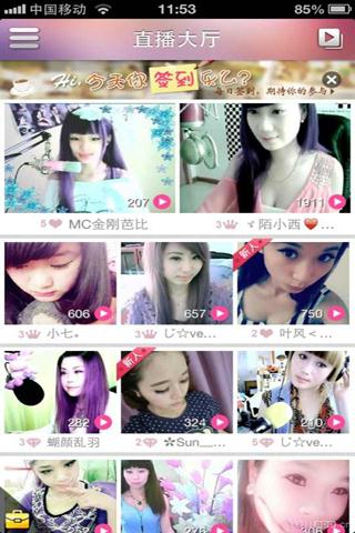 7个频道分类:美女聊吧、K歌达人、舞林大会、谈情说爱、综艺秀场,