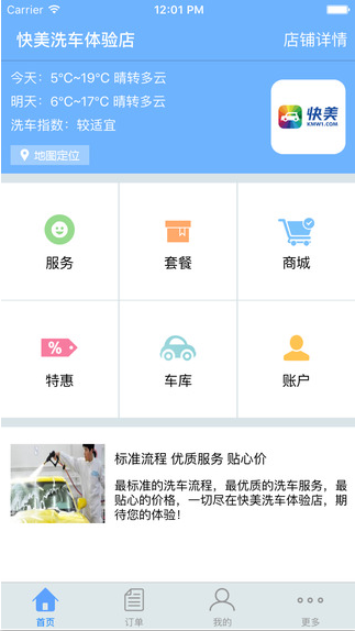 属于洗车店自己的app,个性化设置洗车店logo、地理位置、图文详情介绍、店铺宣传广告配图和宣传文字。