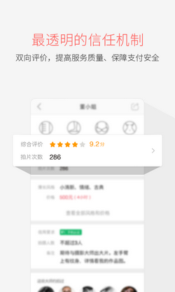完成拍摄的双方互评,为每次拍摄质量把关,为你的每个需求提供参考