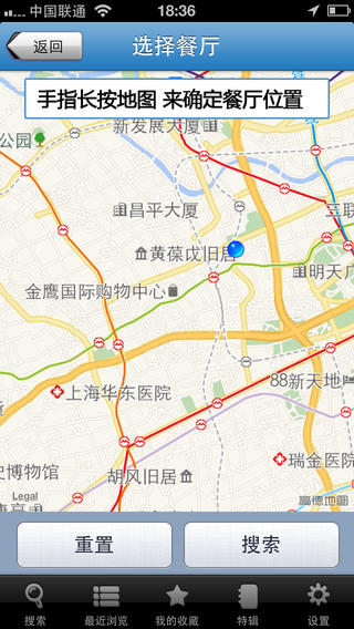 ★在移动中寻找合适的餐厅,通过GPS功能定位搜索身边美味。