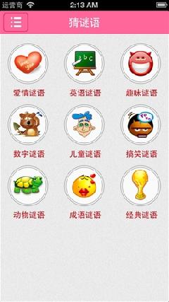 猜谜语:爱情谜语、英语谜语、趣味谜语、数字谜语、儿童谜语、搞笑谜语、动物谜语、成语谜语、经典谜语;