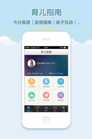 1.发育指南:见证宝宝的每周成长 2.每日食谱:为您推荐早中晚辅食,合理安排宝宝膳食 3.成长日记:记录宝宝点点滴滴 4.每周任务:宝爸宝妈的备忘录 5.亲子互动:爸比,妈咪,快来和你的宝贝一起游戏 6.每月测评:宝宝成长早知道,宝宝更健康,爸妈更安心 7.育儿社区:和千万辣妈们一起交流育儿心得