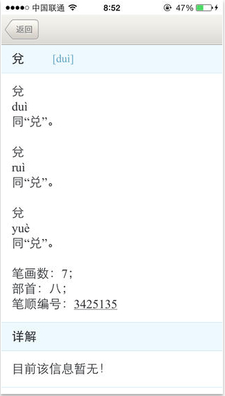 可以拼音查询,偏旁查询,非常方便。修复了iOS5.0一下系统闪退的问题;
