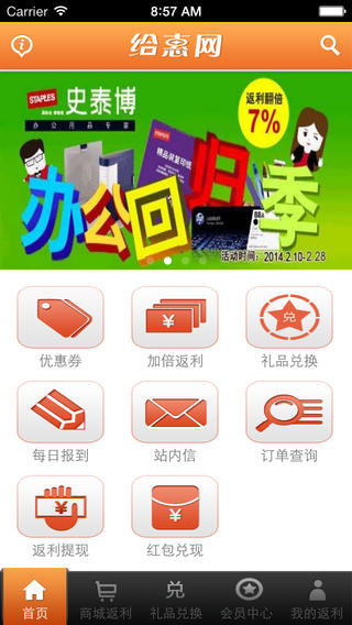 促销优惠:给惠网经常发布各个商家的促销优惠信息,并长期提供各种商家的现金优惠券,代金券等。