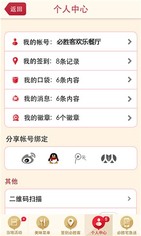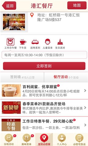 签到必胜客:查看您身边的餐厅,更多签到活动和APP用户专属优惠!
