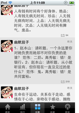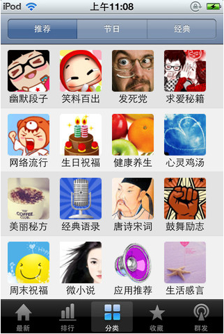 包含大量幽默,笑话,节日,祝福,健康等内容的手机软件