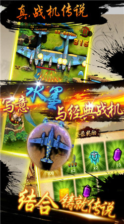 真战机传说是一款水墨风格的二战空战类游戏,每架飞机都有自己水墨效果,使得机械战场上出现了一种浓郁的中国风。敌人会越来越强,但只要你拥有一颗征服之心就可以战胜他们。每次战斗中玩家飞得越远分数就越高,也会获得更好的奖励。在战斗中你并不是孤军作战,可以领取僚机助你更好的进行战斗。主战飞机和僚机都可以进行升级,级别越高攻击力就越高,弹幕就越华丽。快来感受这款游戏独特的魅力吧!
