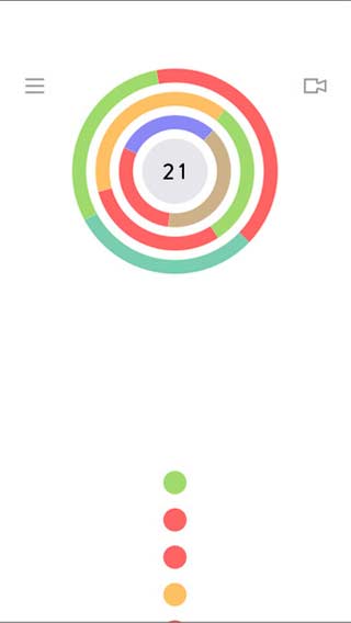 旋转同心圆破解版是一款风格非常小清新的休闲游戏,这款游戏的玩法非常简单,点击屏幕将小球发射到上面的旋转大圆圈就可以了,但是游戏过程可没有想象中的那么容易,需要将小球的颜色对应到大圆圈上。