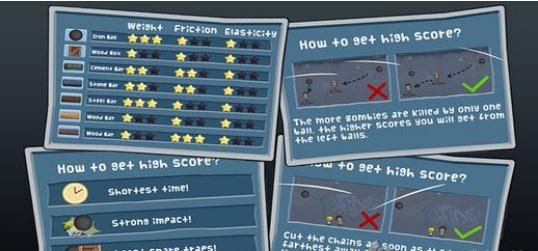 游戏的玩法仍旧是经典的打僵尸,不过游戏的亮点在于需要玩家利用各种素材组成严密的物理机关来干掉不断出现的僵尸!