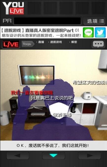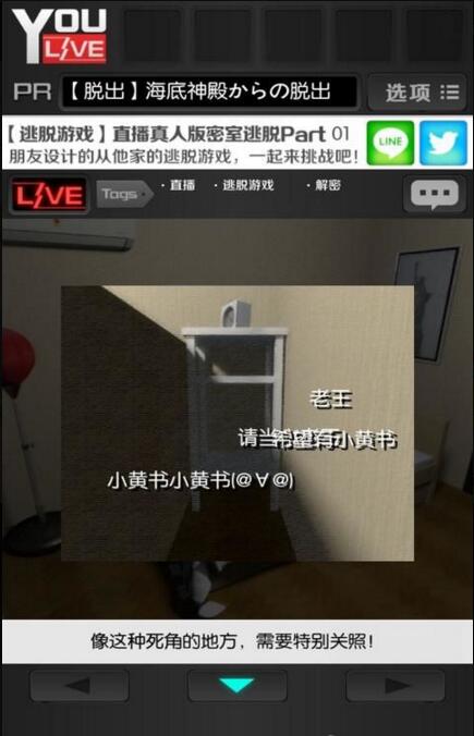 直播从朋友家逃出去是一款非常有创新意义的解谜逃脱类游戏,听过各种直播就是没听过逃出直播吧?而且这款游戏的画风也不像以往的脱出游戏是恐怖的画风,由于是直播的脱出方式,屏幕上会出现很多的字幕,而这些字幕上就包含了逃出的提示方法!这么创新意义的游戏,喜欢逃出类手游的小伙伴们可不要错过了哦!
