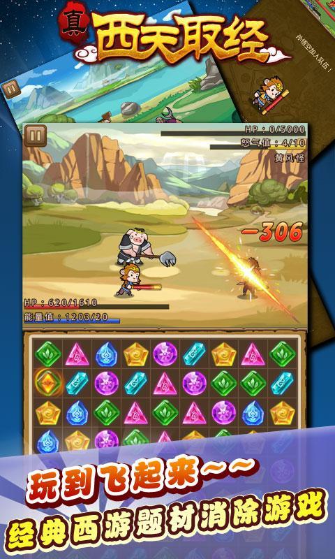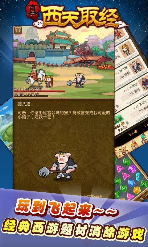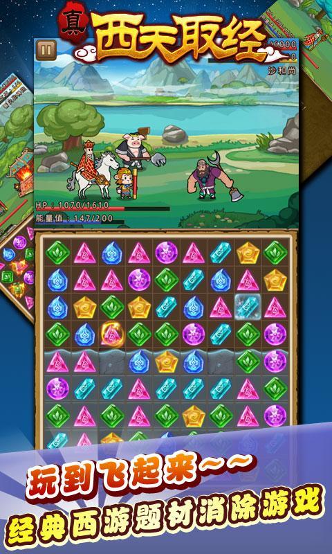 真西天取经是一款经典的西游题材消除游戏,通过唐僧师徒4人西天取经的成长故事与三消游戏模式相结合,创造出简单有趣变换无穷的玩法。