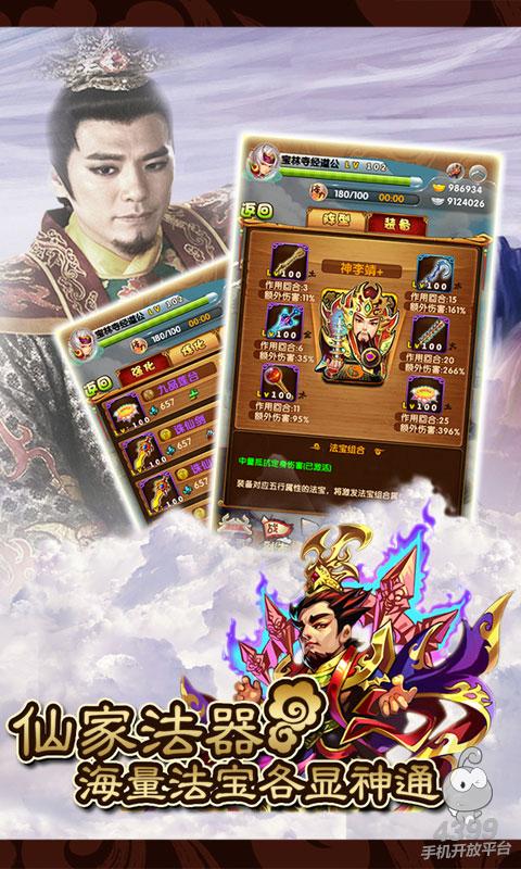 2、神话经典法宝乱入,属性培养、技能强化,海量法宝无穷变化