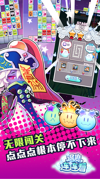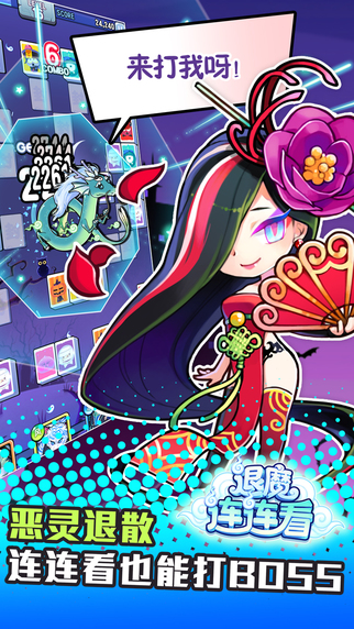 《退魔连连看》是网易韩国事业部研发出品的创新连连看手游。除了拥有传统连连看游戏的关卡玩法外,玩家还可以退魔师的身份登场并与各种可爱的妖怪进行战斗。现在,连连看也能打BOSS了,无限闯关玩法让你根本停不下来!是时候组建自己的退魔团队了!