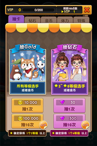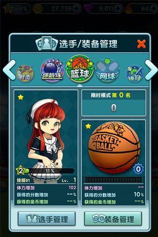 通过完成游戏中的任务,玩家可获得钻石和金币奖励。游戏中获得的金币和钻石能用来购买等级更高更强大的运动选手,或是多种多样助力高分的装备和游戏道具。数十种风格不同的萌妹子、花美男等你来挑,快收集选手和道具变得更强大吧!