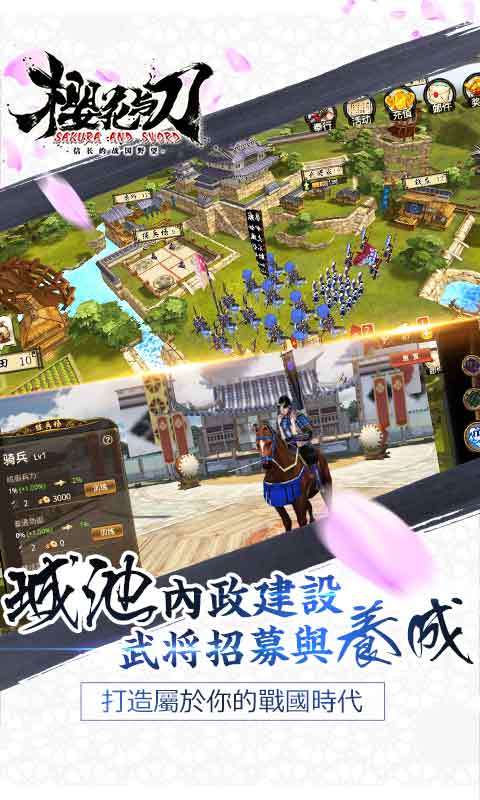 大战国樱花与刀是一款融合了和风与历史的史诗战争风格的策略类手机游戏。本作将会带你穿越回到这个独特的乱世与我们一起创造新的战国幻想,赶紧来加入一起攻城略地招募新成员吧!